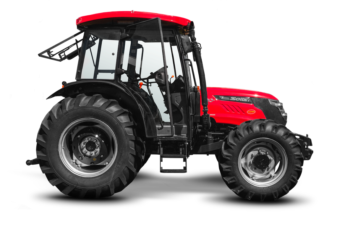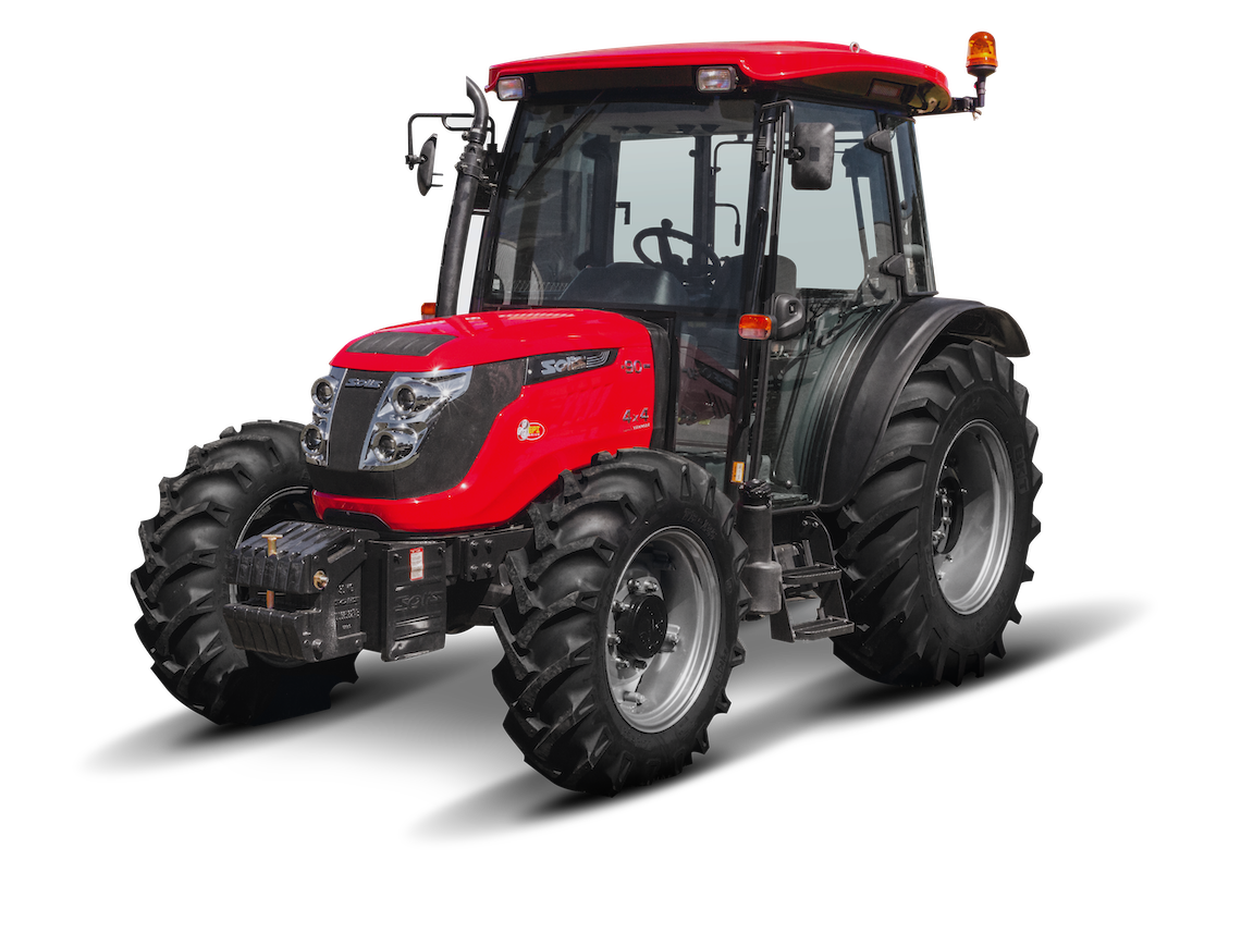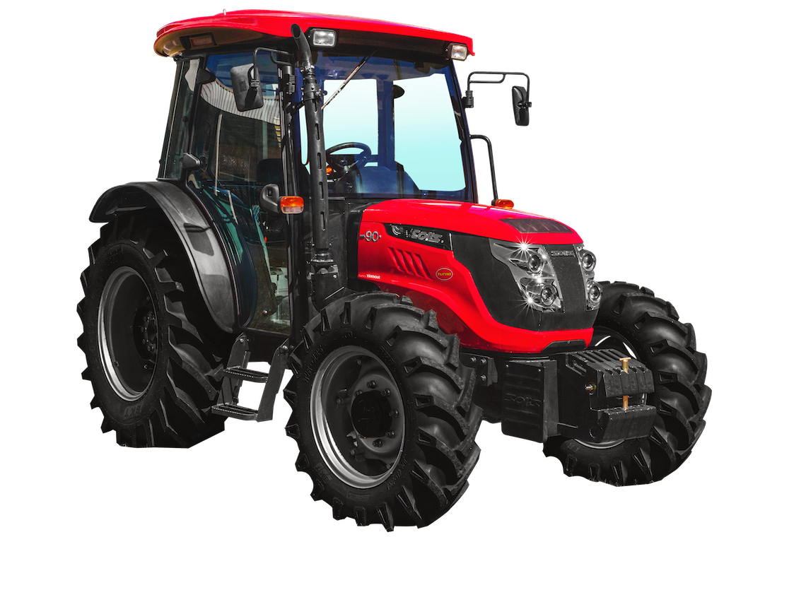 Trator Solis 90 N – Estreito foi desenvolvido especialmente para culturas que necessitam de máquinas compactas e versáteis. Suas características, como largura, potência e conforto são ideais para trabalhos em culturas perenes e adensadas, como o cultivo de cafezais e pomares, além de contar com um EPC retrátil, ideal para operações com alturas limitadas, como parreiras e galpões. Apesar do seu tamanho reduzido, possui um motor turbo de grande desempenho e alto torque à baixas rotações, que confere uma operação mais eficiente, principalmente em implementos que necessitam de alta potência na TDP, como o triturador e o turbo atomizador. Possui também uma segunda velocidade (TDP Econômica), que proporciona maior rendimento e economia de combustível. Também está disponível, a TDP Proporcional na qual é possível a inversão da rotação do eixo TDP quando selecionado este modo em marcha ré. A tração dianteira auxiliar (TDA) proporciona maior desempenho ao trator, através da significante diminuição de patinamento, graças a seu eixo dianteiro compacto e suas características como robustez e o limitador de patinamento que atua como um bloqueio diferencial, favorecendo sua aplicação em terrenos inclinados e montanhosos. Seu sistema hidráulico tem capacidade para 2.500 Kg e possui duas válvulas de controle remoto de linha.